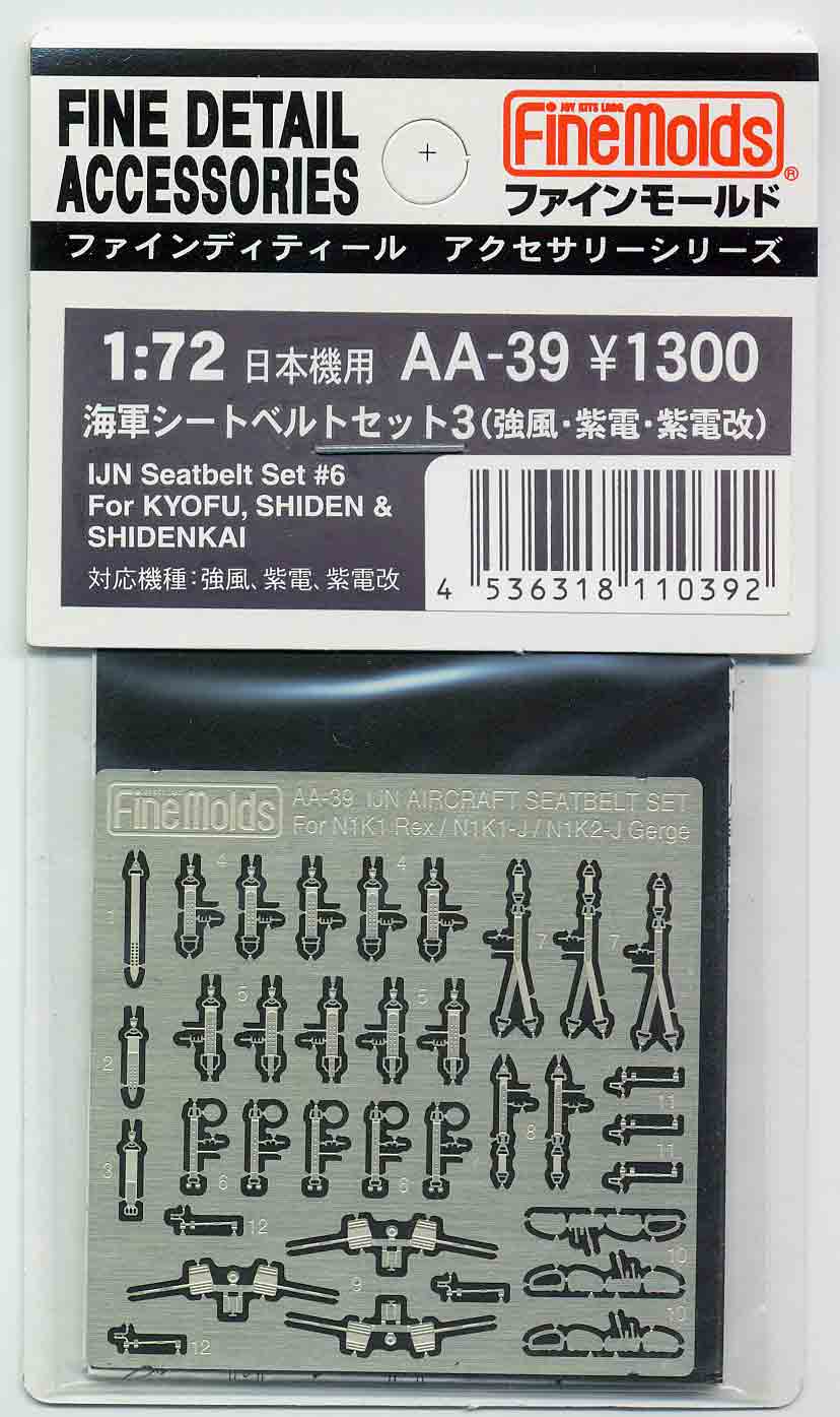 海軍シートベルトセット3(強風・紫電・紫電改) 川西製の3種の戦闘機「強風・紫電・紫電改」に使用できるシートベルトがセット。特に「紫電改」用はY型をした独特のものです。他に風防開閉レバー、「紫電改」用のスロットルレバーなどをセットしたエッチングパーツです。 |