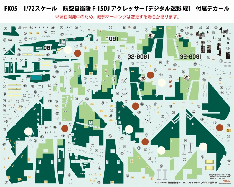 F-15戦闘機各タイプに対応した機体側面に装備された長方形のフォーメーションライトと、チャフ/フレアディスペンサーを精密プラパーツで再現。極薄のプラパーツは立体感と精密感を際立たせます。F-15Jキットと同時発売。