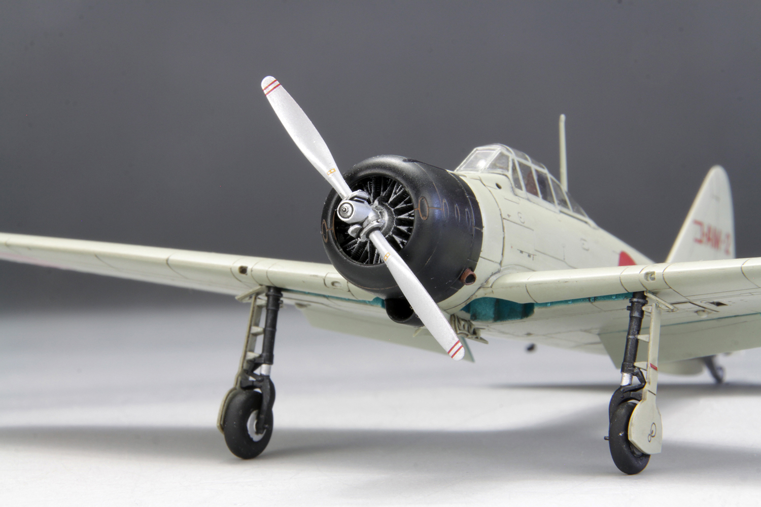 主翼から20mm機銃が突出している二二型甲、五二型以降は別製品のAA54 零戦用20mm機銃&ピトー管セットをお使いください。 |